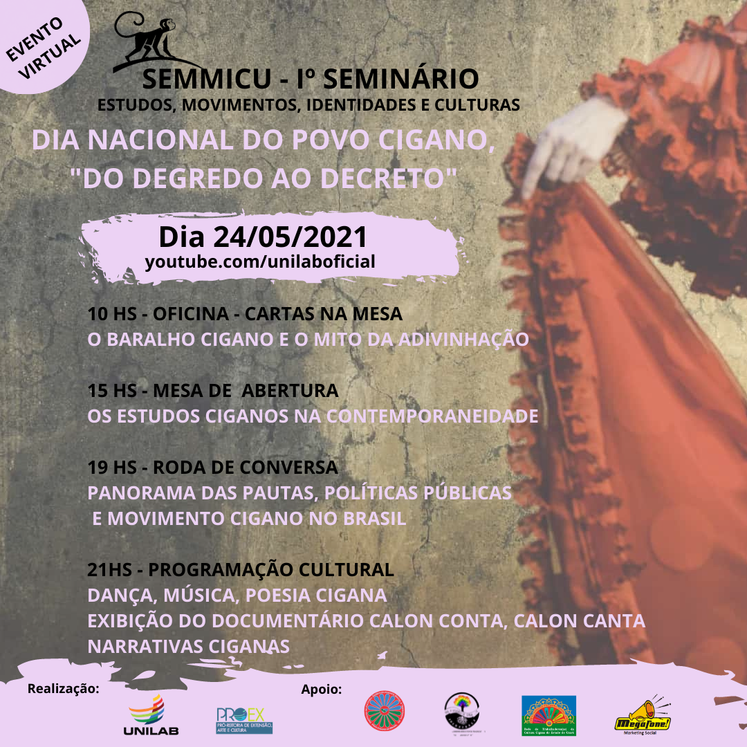 Venho por meio deste, convidar todas e todos a participarem do evento que será realizado no dia 24 de maio de 2021 em alusão ao Dia Nacional do Cigano no Brasil e no Ceará.